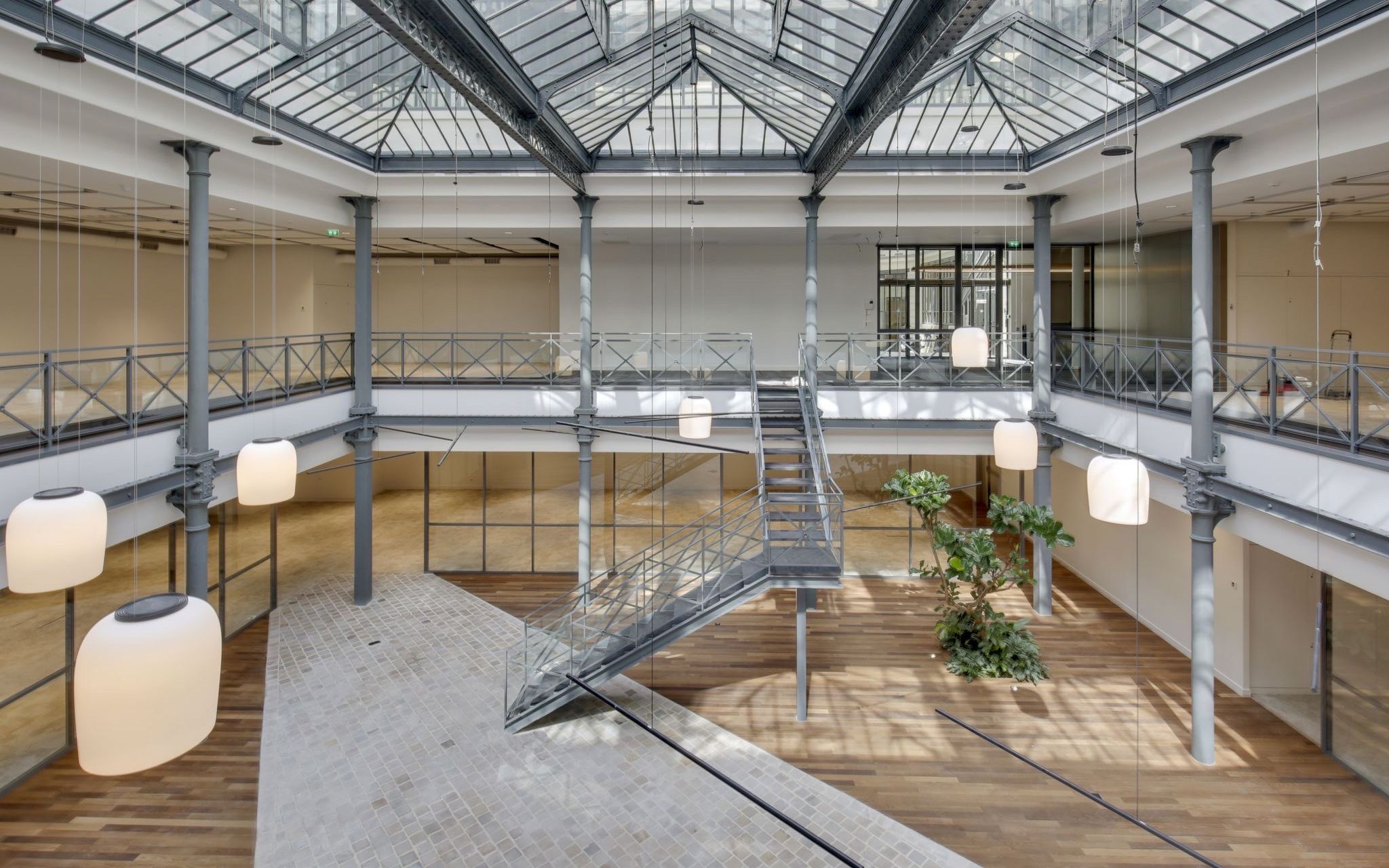 Ouvrir, faire rentrer la lumière, dialoguer avec les atouts architecturaux du lieu pour redonner de la cohérence et une atmosphère actuelle à ce volume atypique sous une magnifique verrière Eiffel.