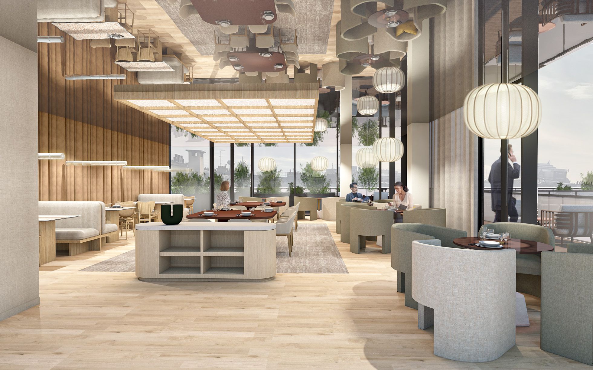 Accompagnant une restructuration profonde du bâtiment par l'agence EA, le réaménagement complet des parties communes - hall, palier, restaurant, business center, rooftop - devront permettre de redonner sa pleine mesure à cet ensemble immobilier de qualité en insufflant une dynamique de modernité.