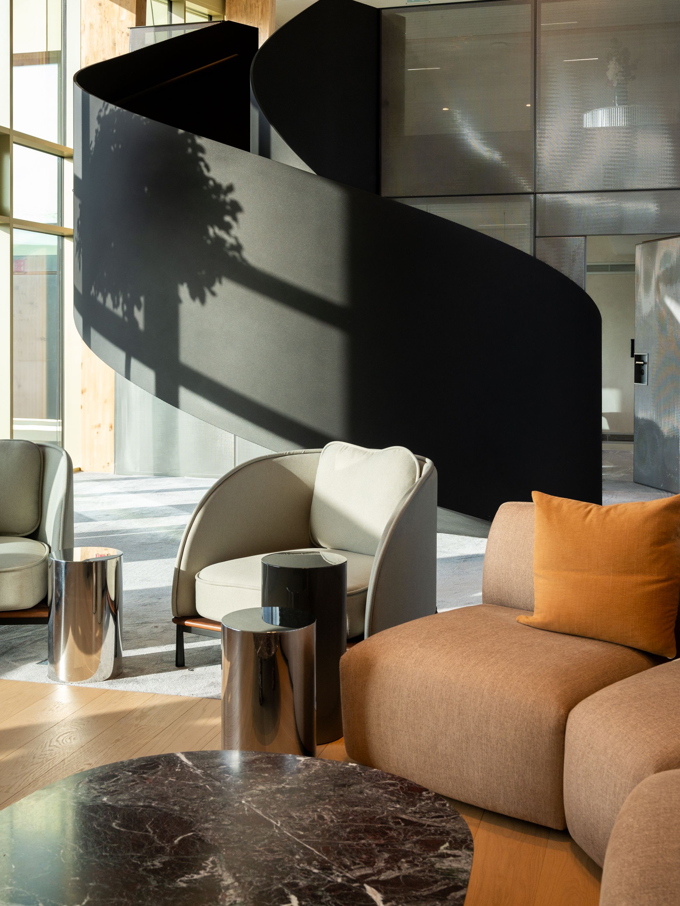 Portant la signature “luxe contemporain “ développée avec la marque à Paris et au Luxembourg, le siège bruxellois se distingue par la générosité de ses volumes et un programme hybride et interconnecté. Ici, se rencontrent les zones “hôtelières” - accueil, lobby, champagne bar, salons - les lieux de vie et les espaces de travail.