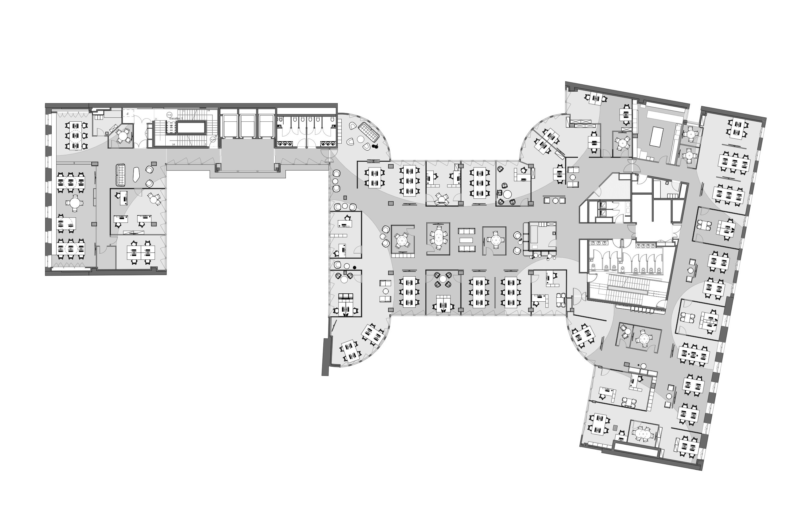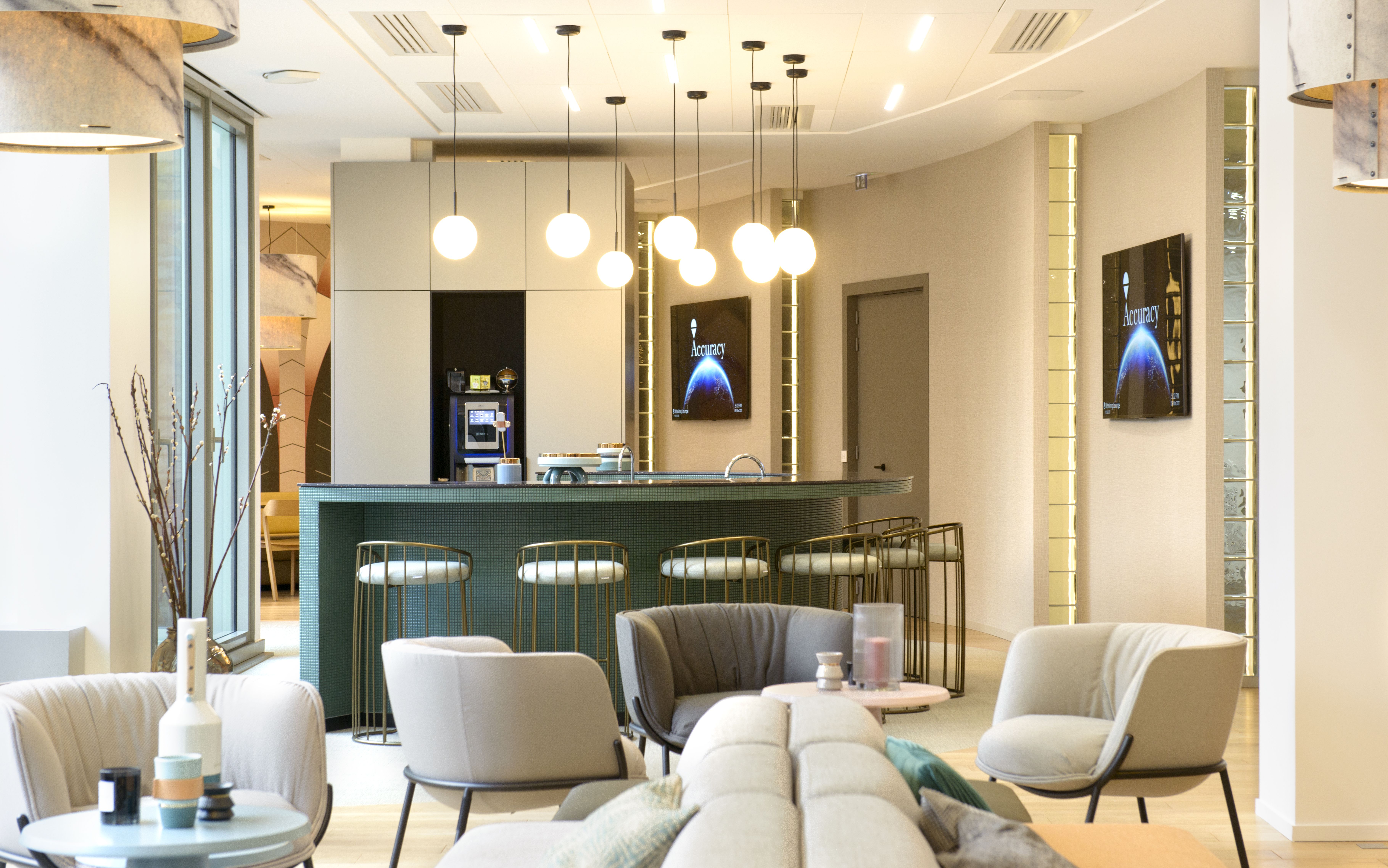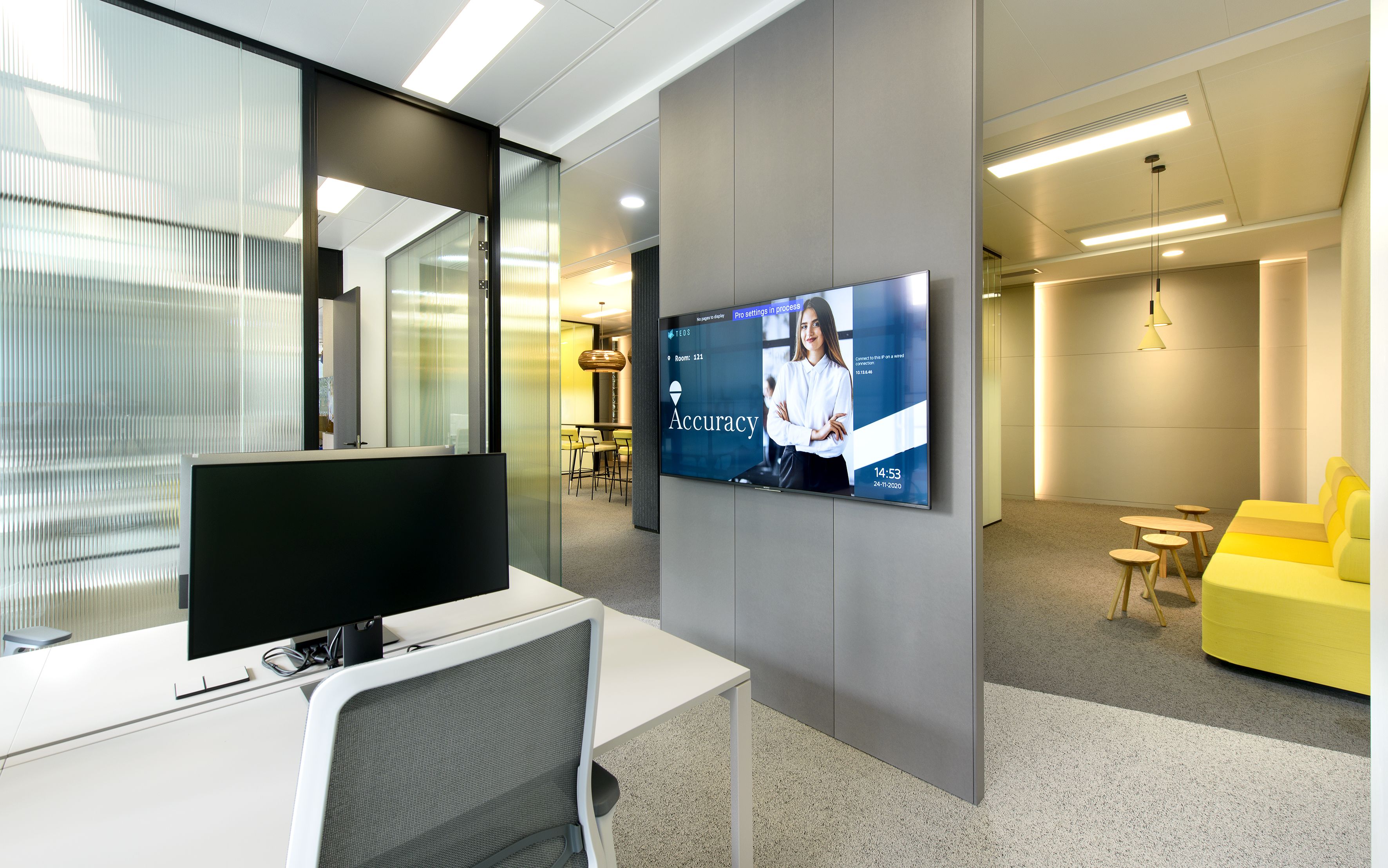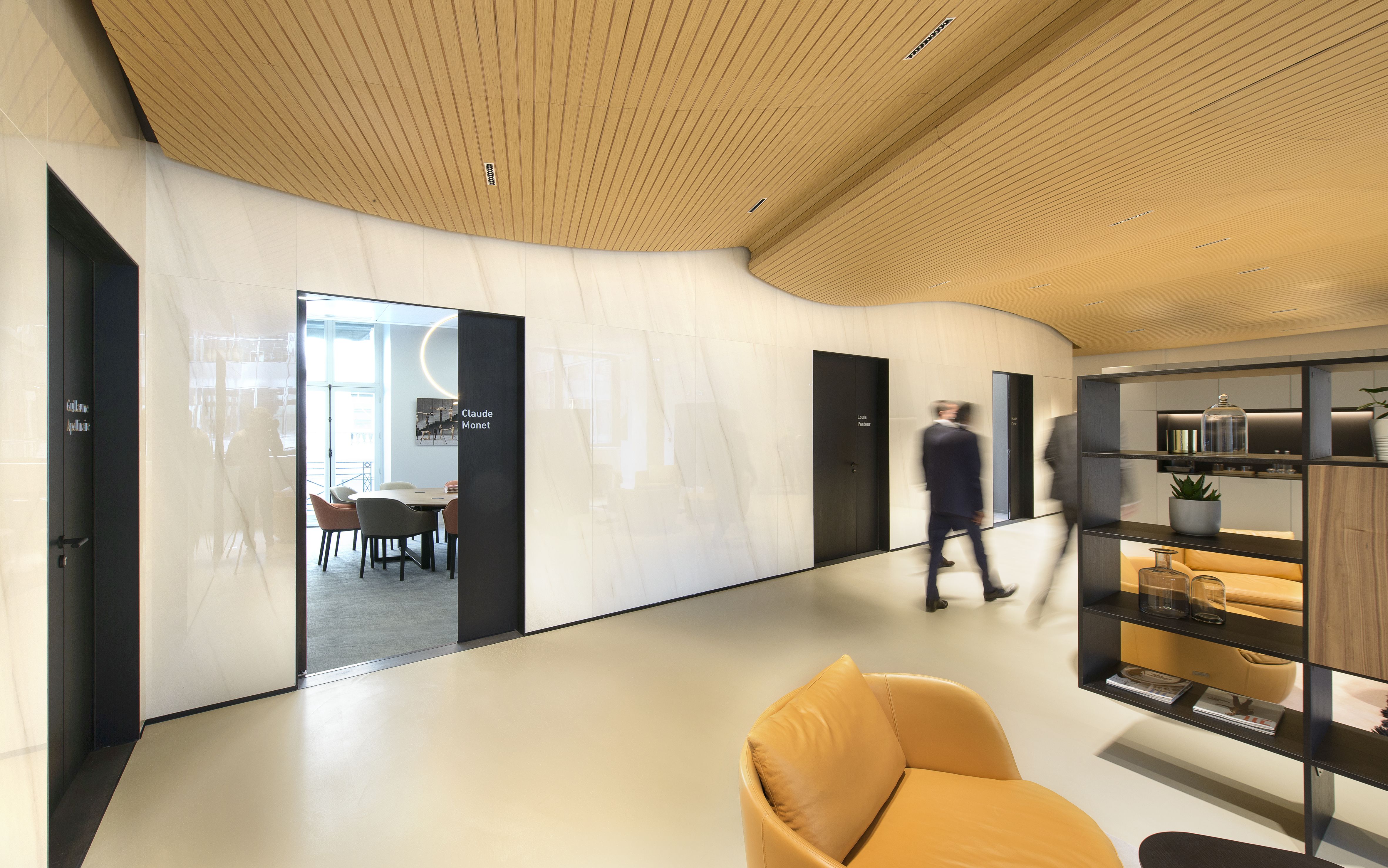 Accuracy, cabinet de conseil financier reconnu et respecté, installe son siège de 3 000 m² avenue Matignon à Paris. Tout autant soucieuse de ses clients que de ses collaborateurs, la firme souhaitait construire un espace haut de gamme mais convivial. Le projet s'articule autour d'un espace client chic et décalé et d'un "working lounge" de 300 m² qui offre aux collaborateurs un lieu convivial, dynamique et qualitatif.