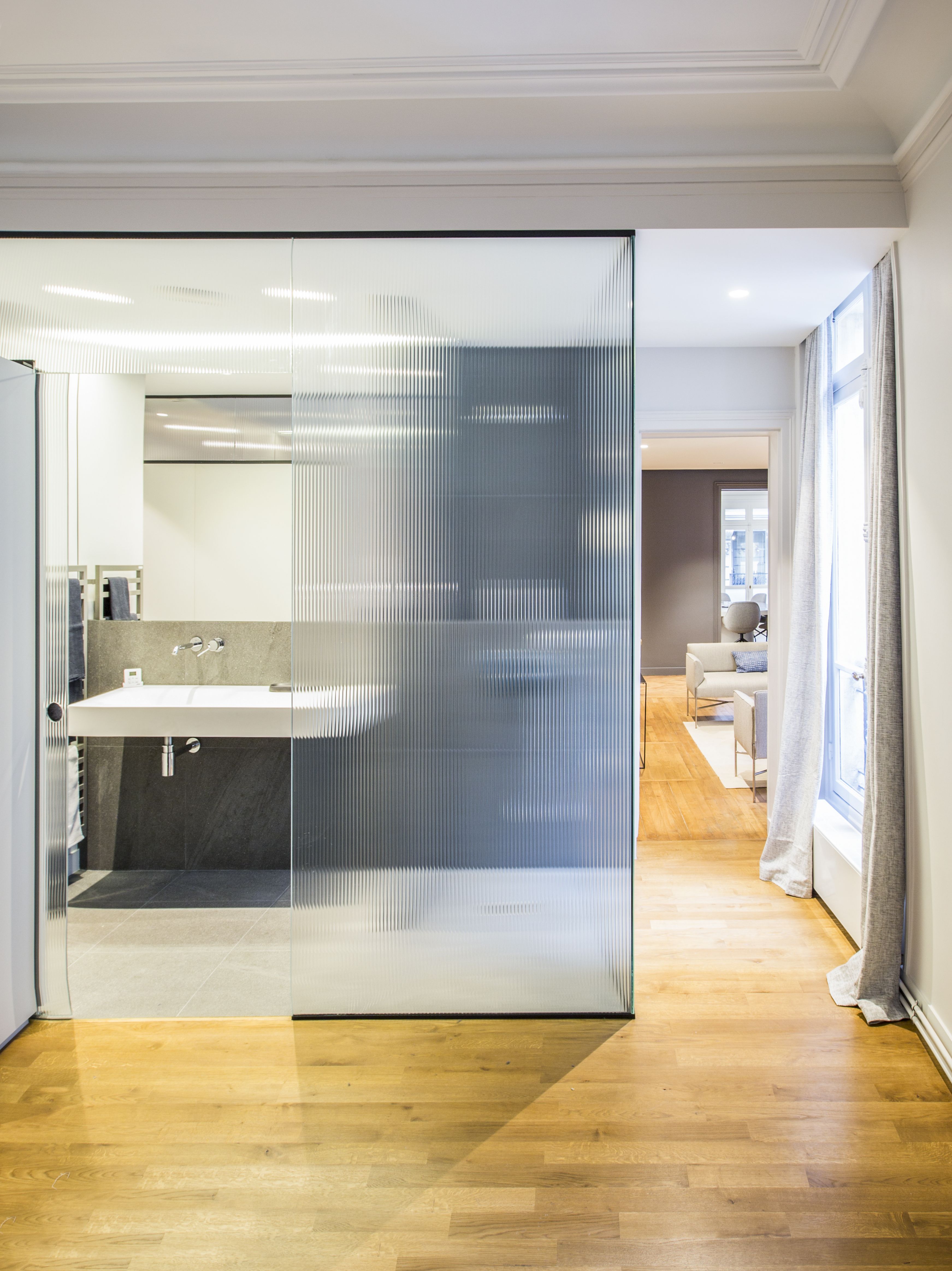 Une « suite d’hôtel » dans un espace de travail et de réception. Fortement ancré en région Lyonnaise, Alliando cherchait à implanter un pied à terre à Paris pour y accueillir ses clients internationaux et offrir un espace de travail adéquat à ses dirigeants. Un appartement de fonction devait compléter le programme.
