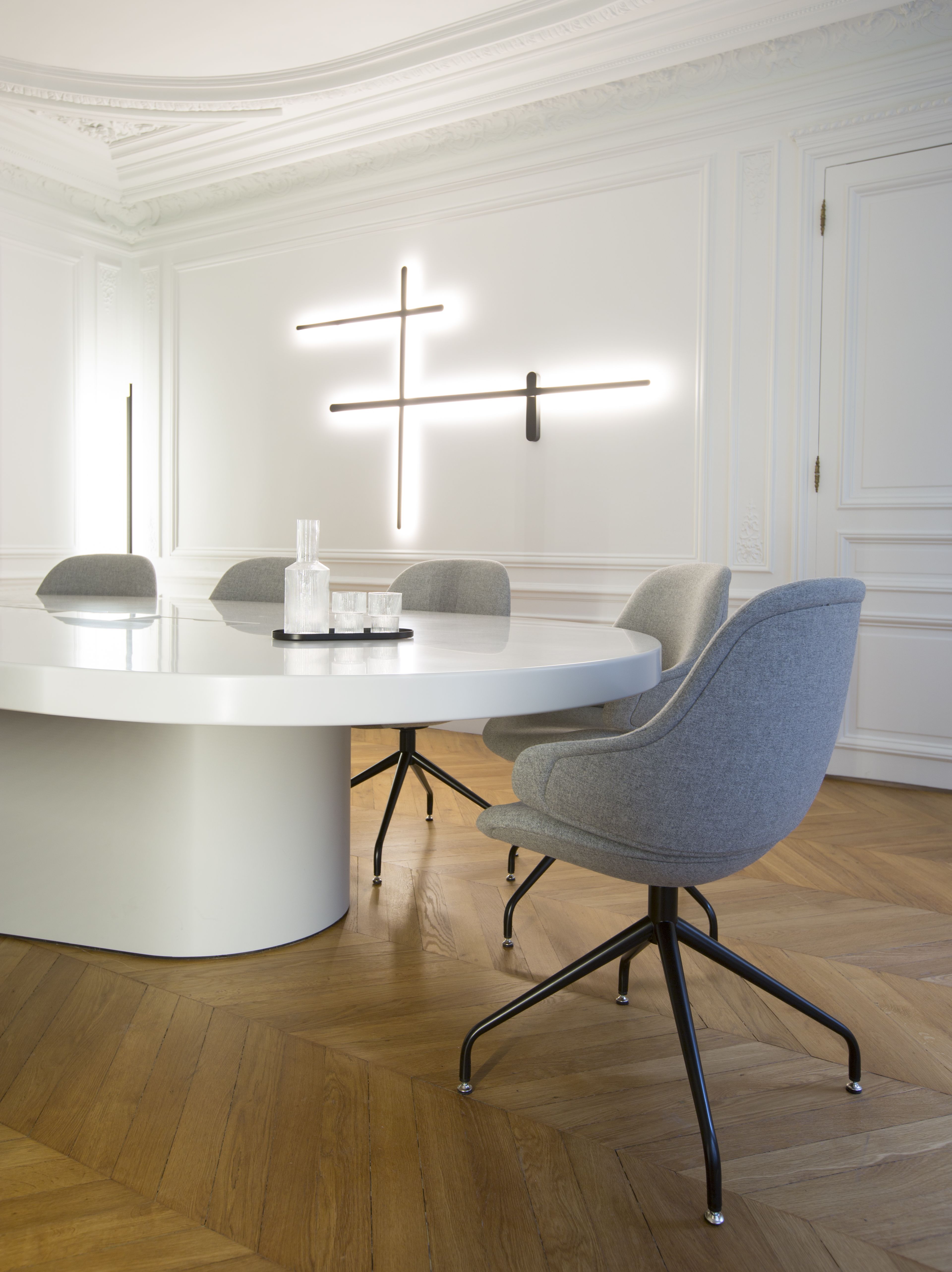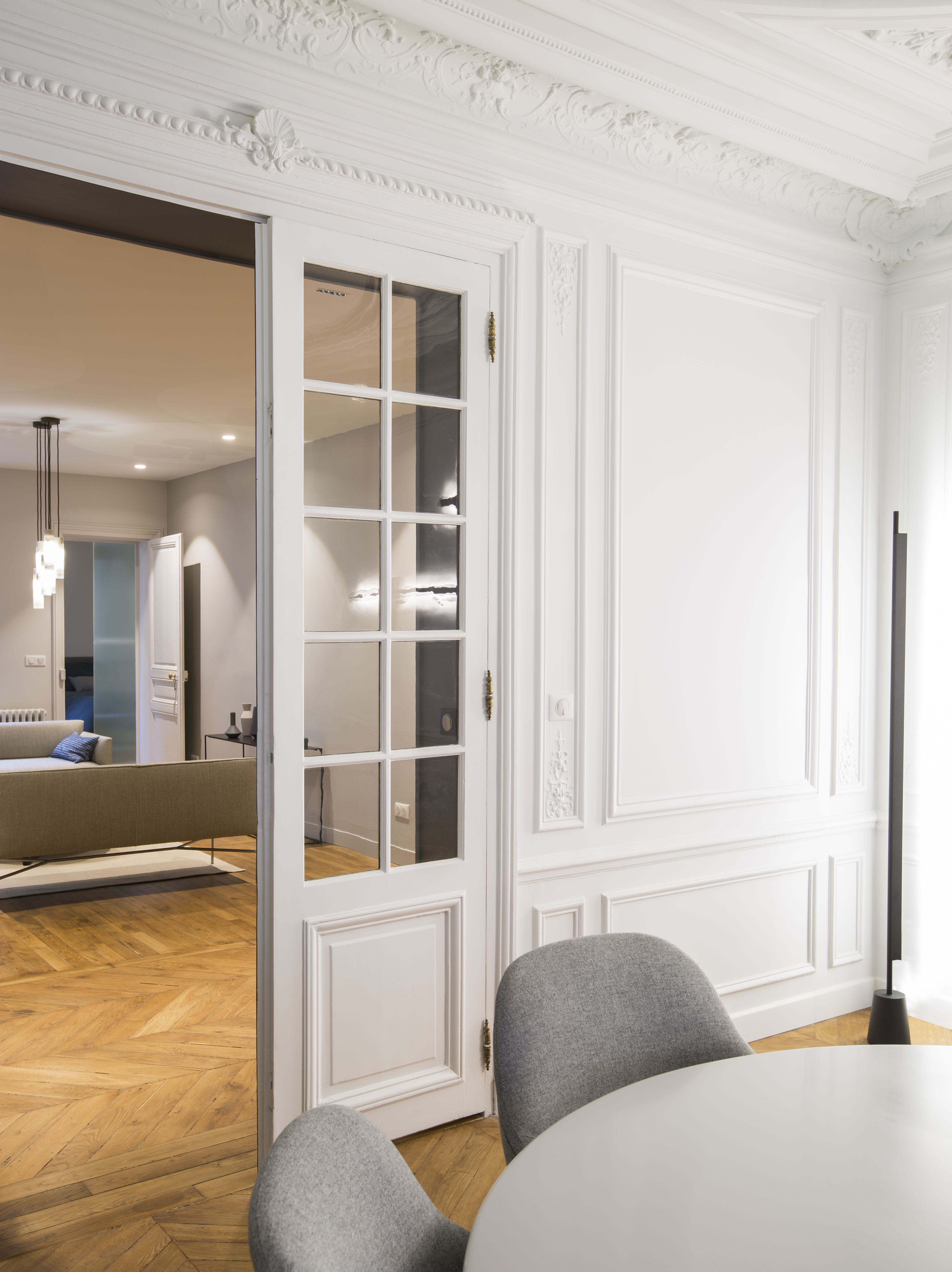 Composés de lignes pures, d’ouvertures et de transparences, les aménagements résolument contemporains dialoguent avec les richesses haussmanniennes du lieu.