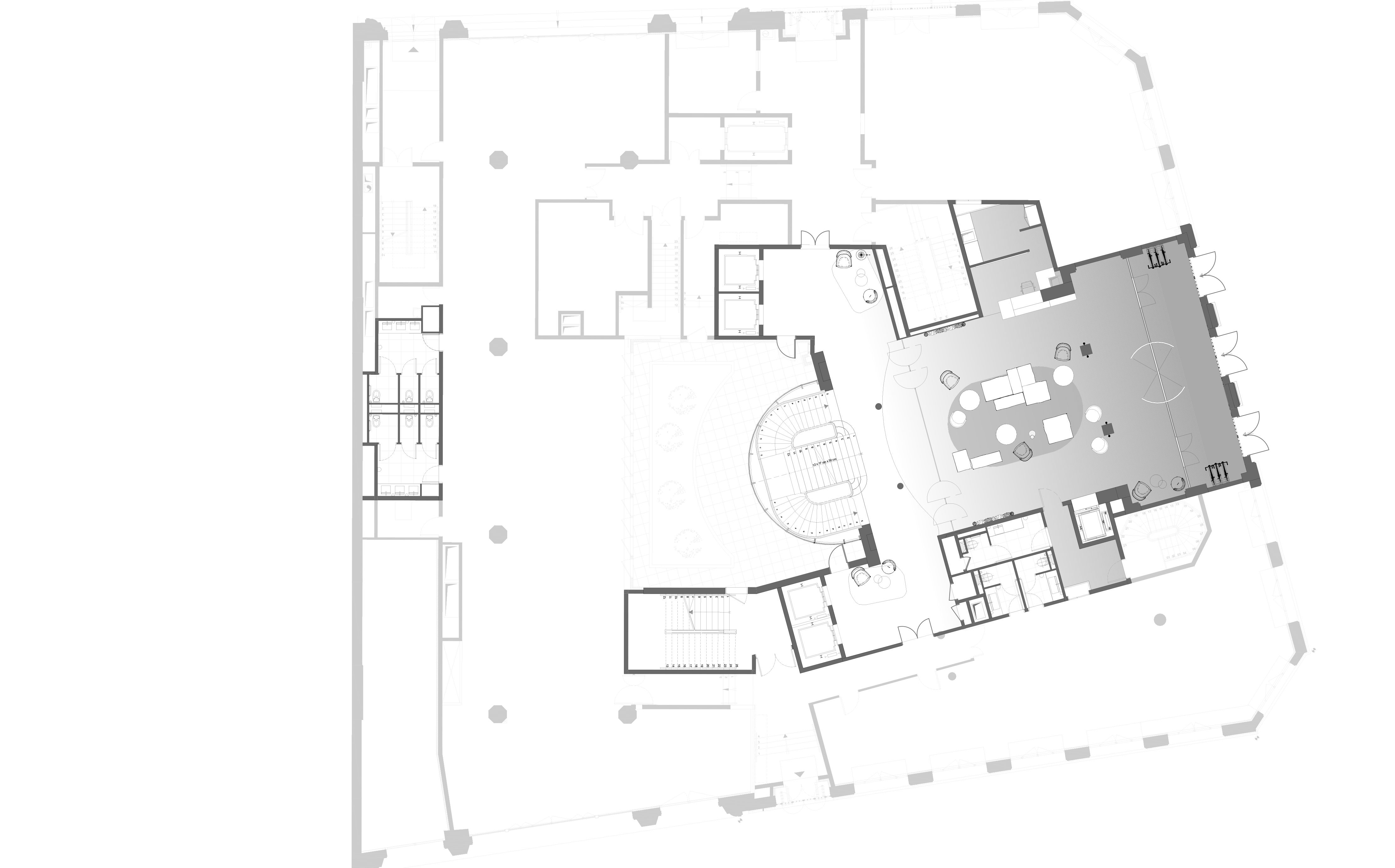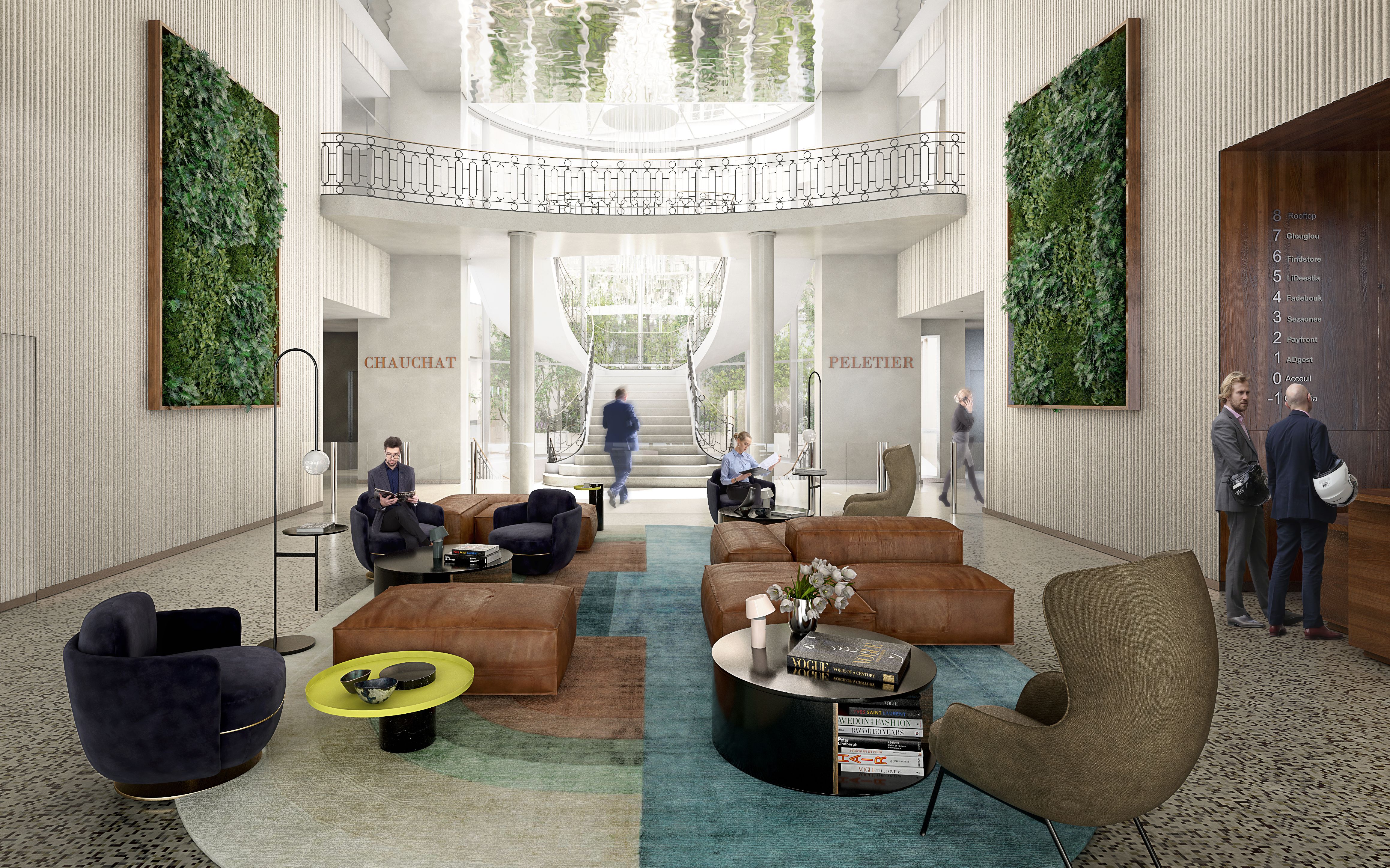 Accompagnant une restructuration profonde du bâtiment par l'agence EA, le réaménagement complet des parties communes - hall, palier, restaurant, business center, rooftop - devront permettre de redonner sa pleine mesure à cet ensemble immobilier de qualité en insufflant une dynamique de modernité.