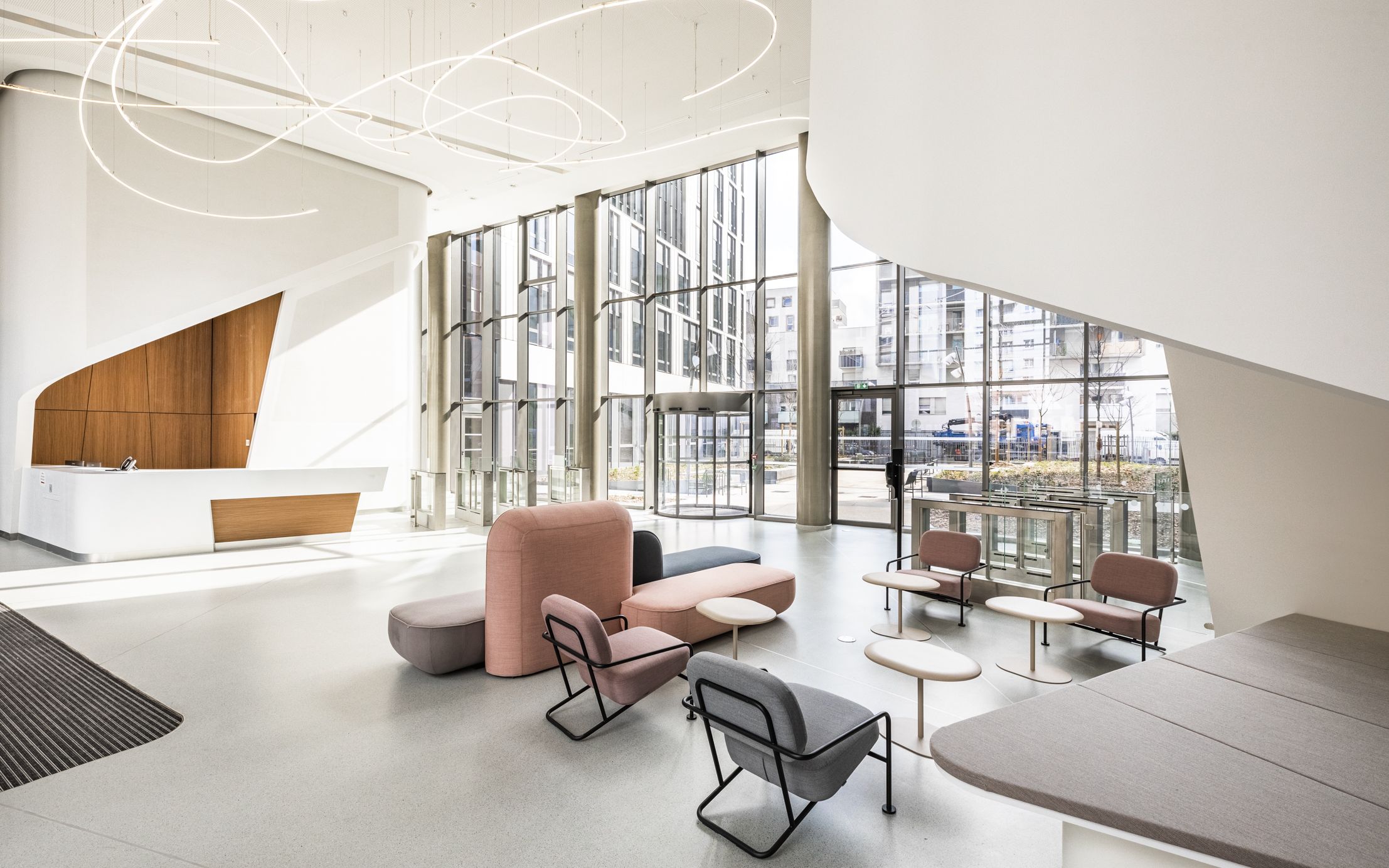 Dans le cadre du rachat de l'immeuble Osmose en cours de construction, JP Morgan Real Estate souhaitait faire évoluer l'architecture intérieure des parties communes pour y apporter une atmosphère chaleureuse et actuelle.