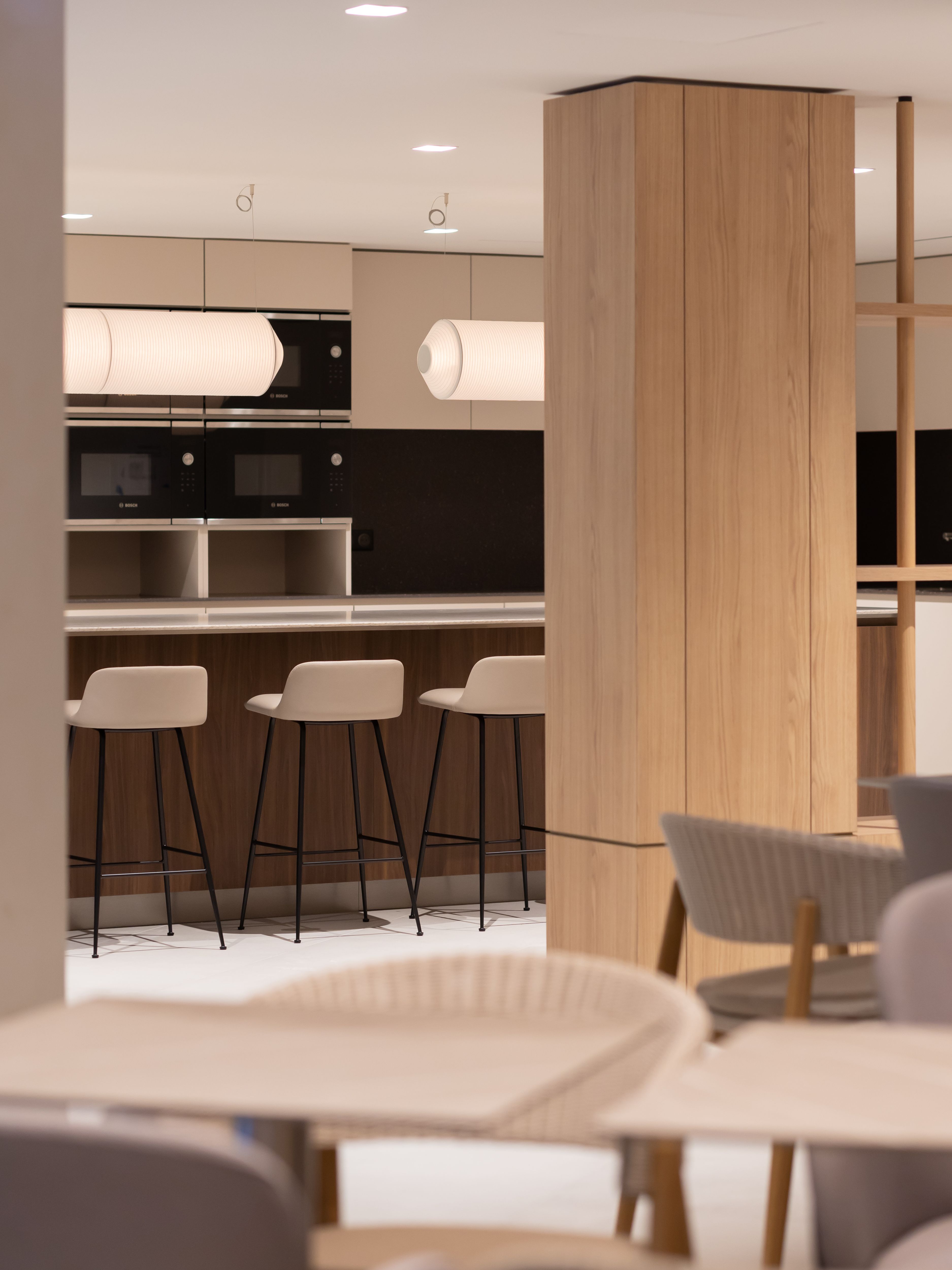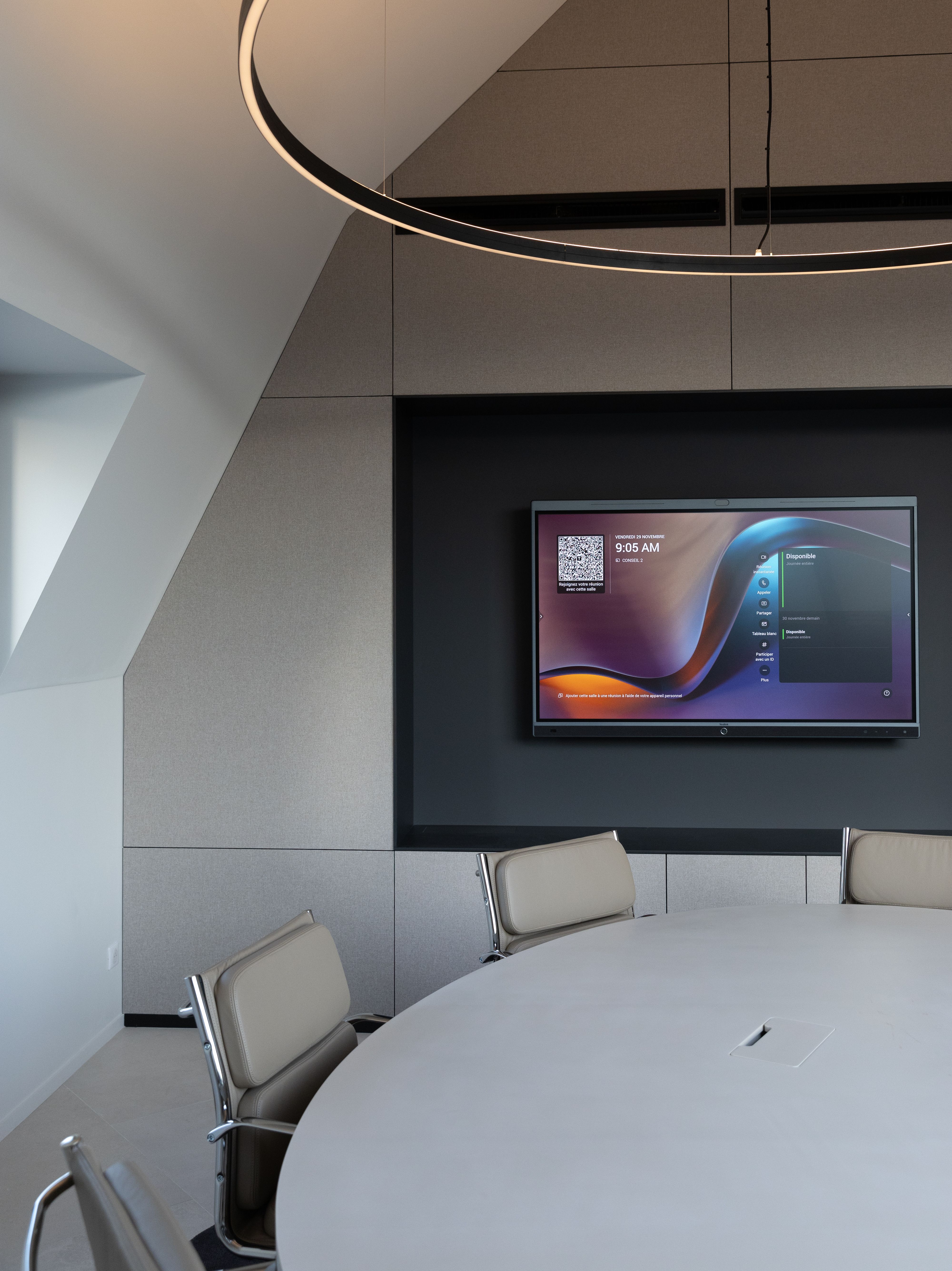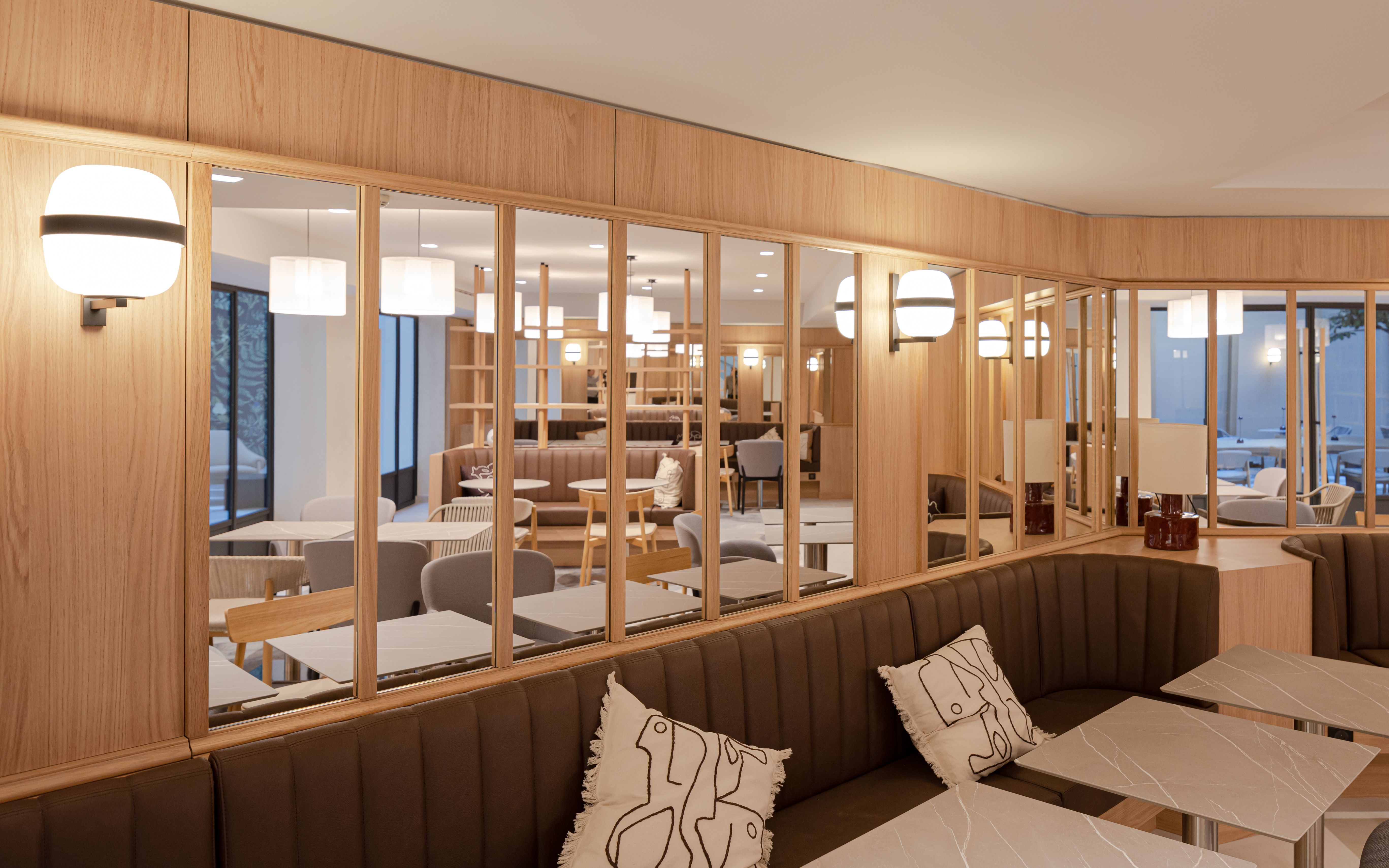 Une atmosphère chaleureuse, des matériaux forts et des volumes traversants abondamment éclairés sont la signature du bâtiment et accueillent le visiteur dès l’entrée.