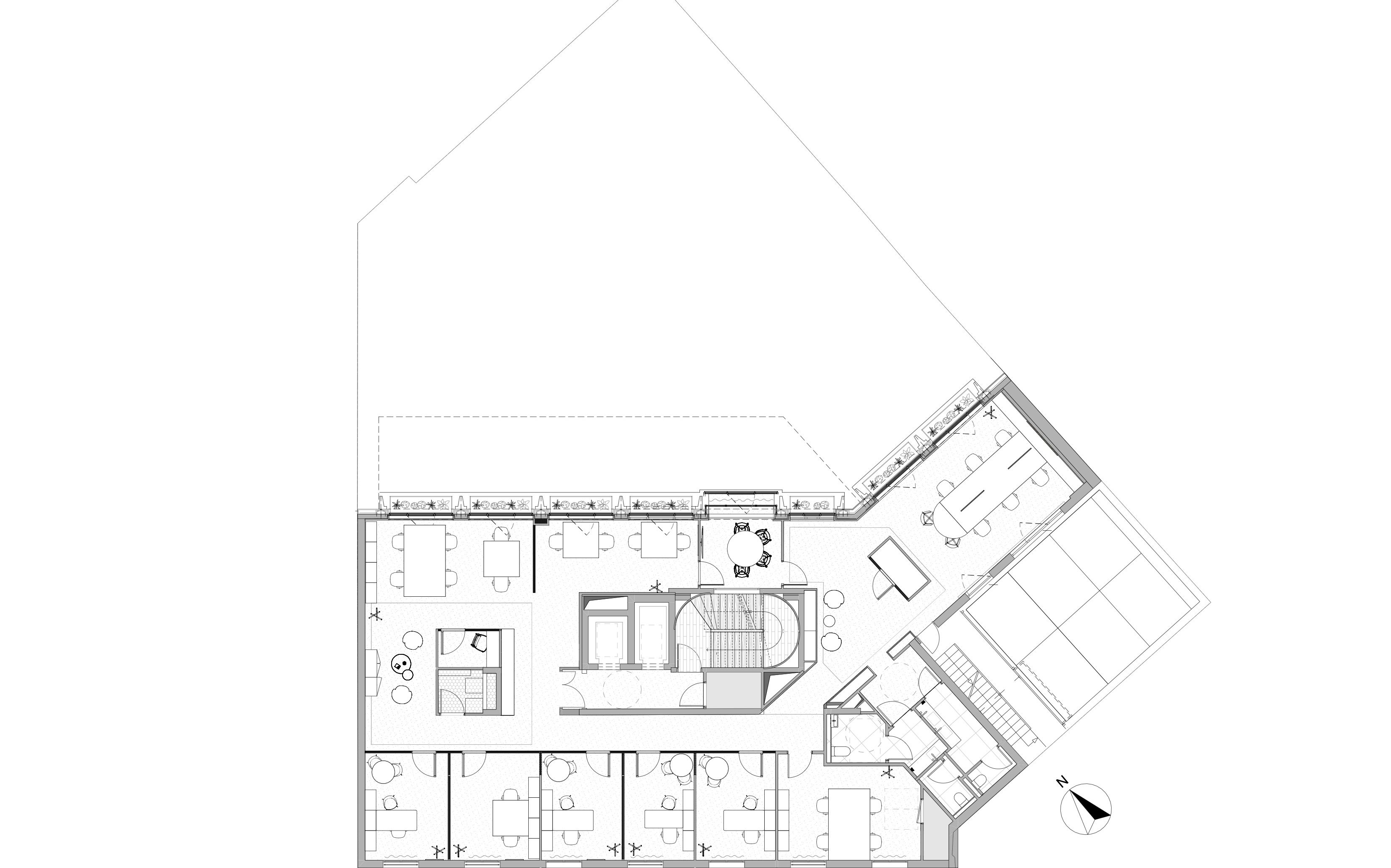 En collaboration avec Buchberger Architecte, l’agence a remodelé entièrement les volumes intérieurs, les façades et les parties extérieures permettant de redonner du lustre et de la qualité architecturale à ce bâtiment trop modeste.