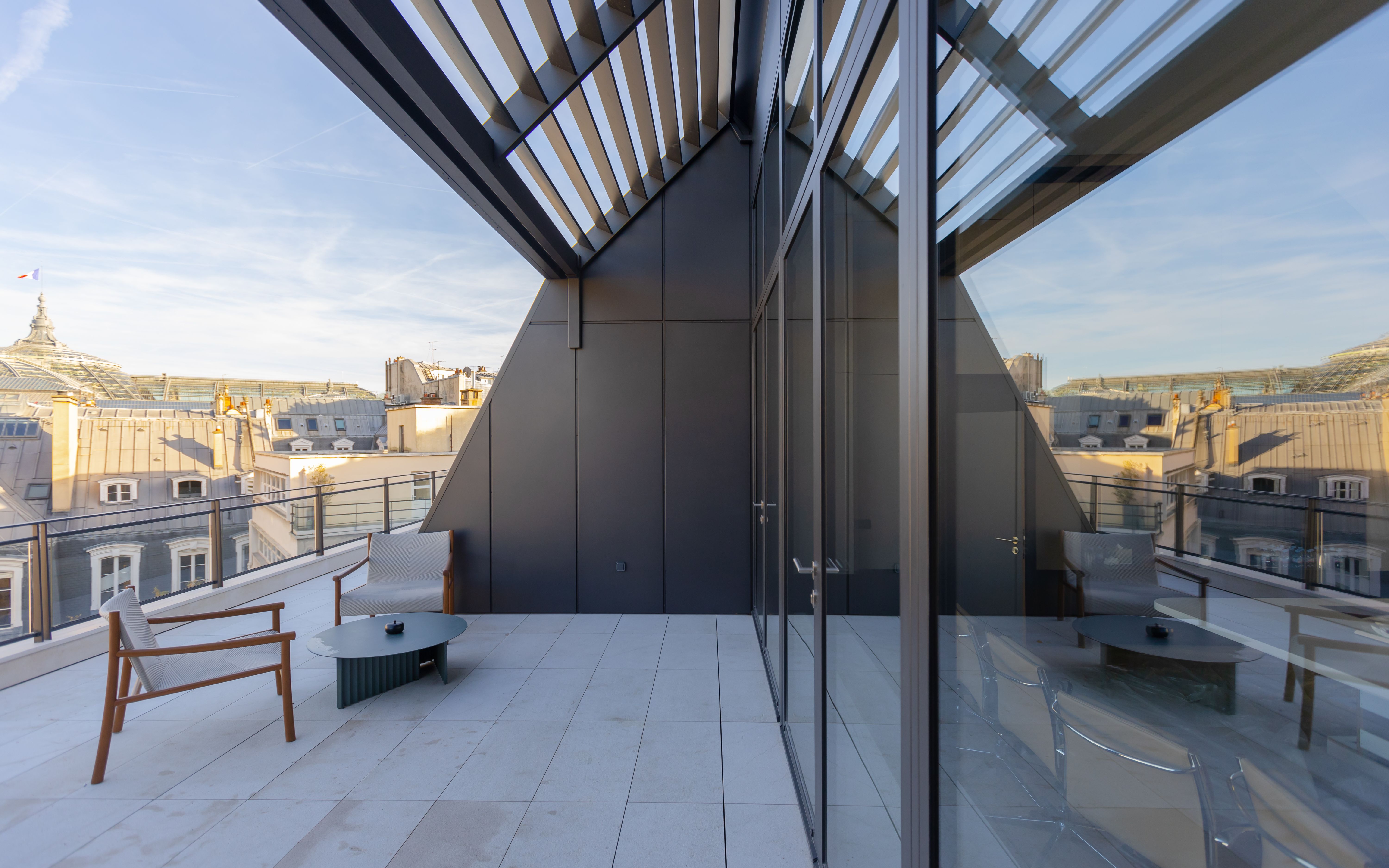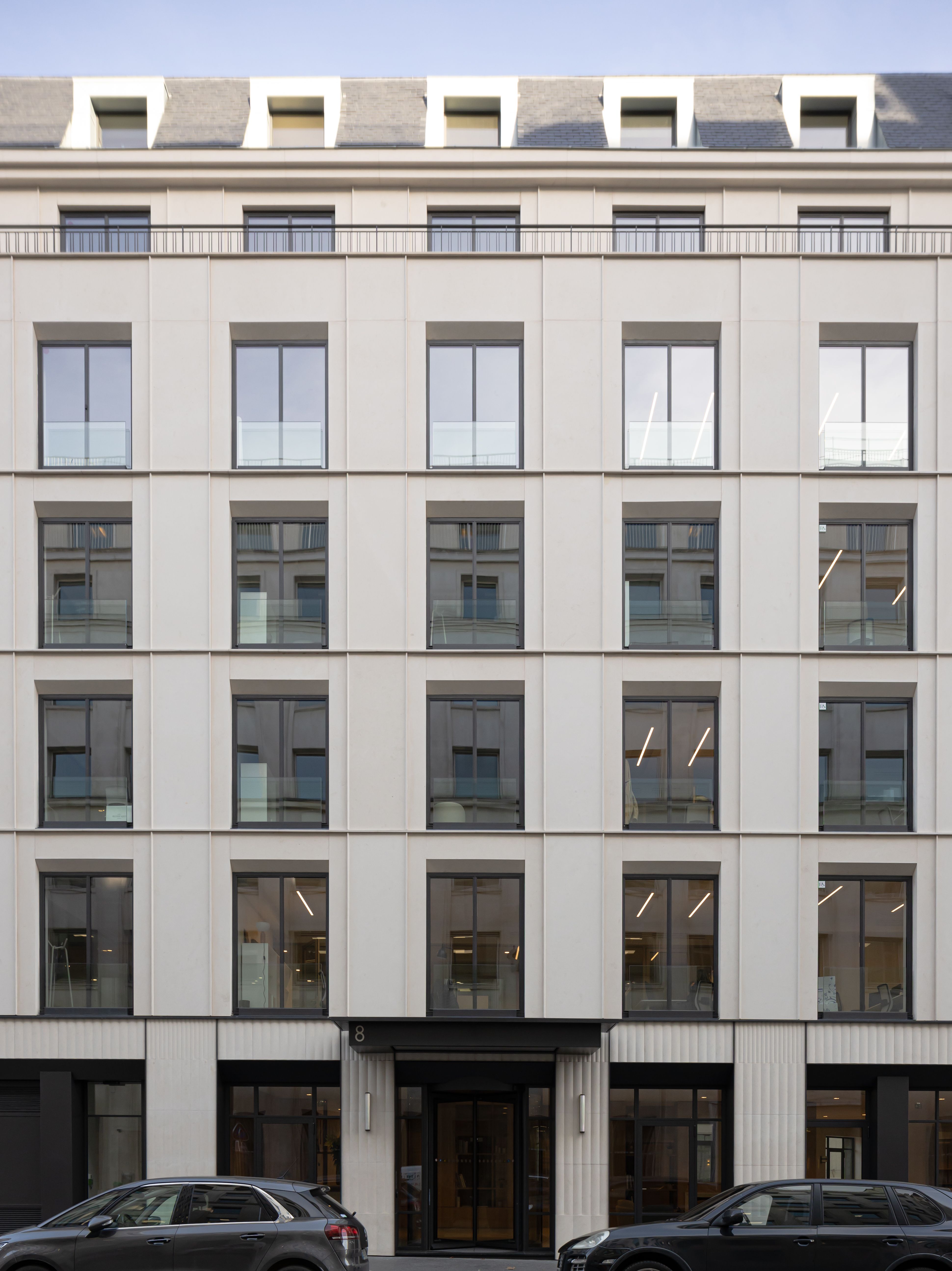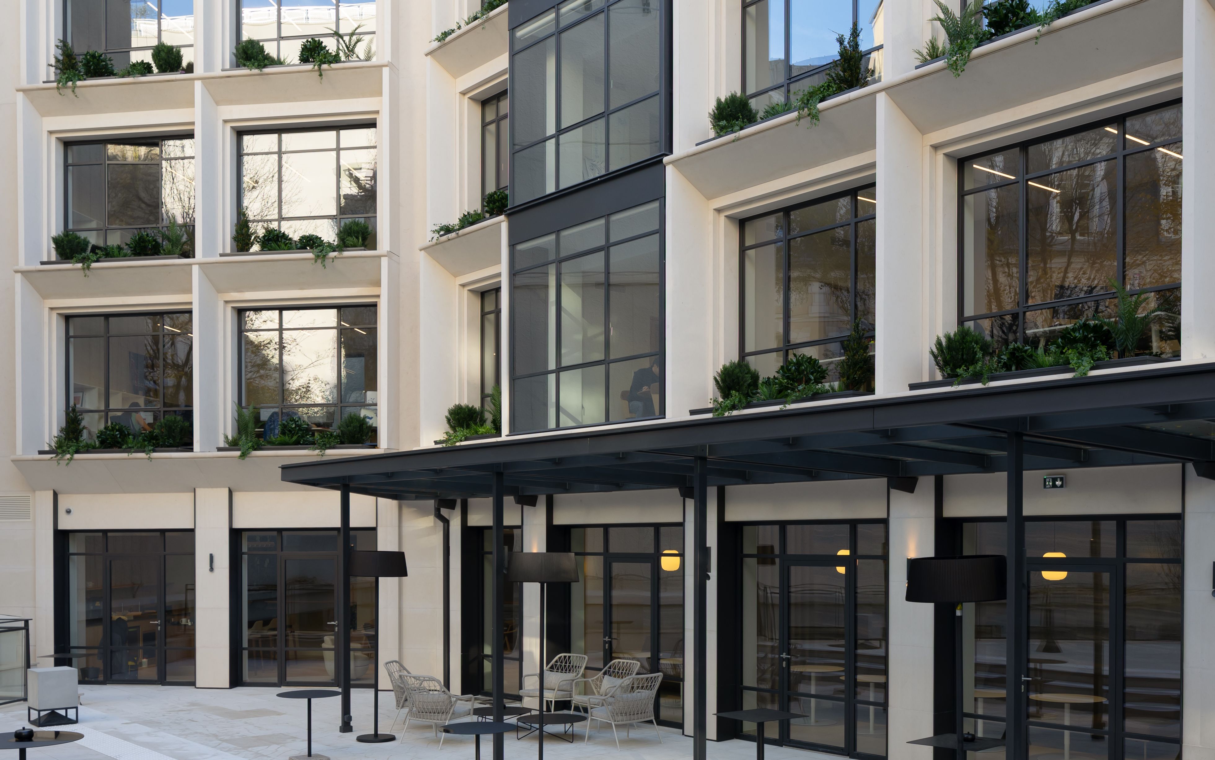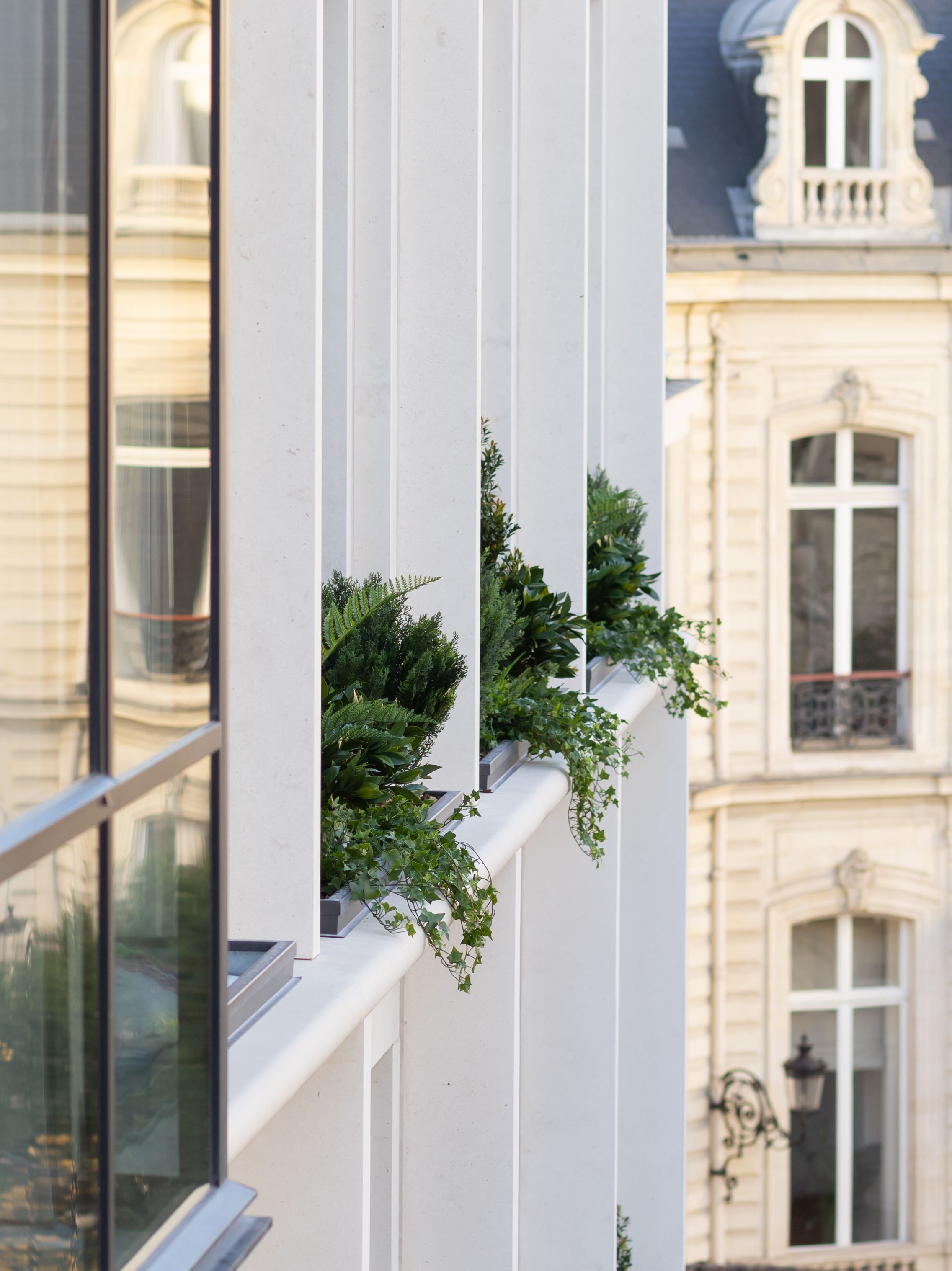 Rue François 1er, à 2 pas du Grand Palais et du pont des Invalides, un immeuble de 2 800 m² construit dans les années 1980 est métamorphosé pour créer un espace d’exception accueillant un hôtel de 9 suites et 3 étages de bureaux haut de gamme.