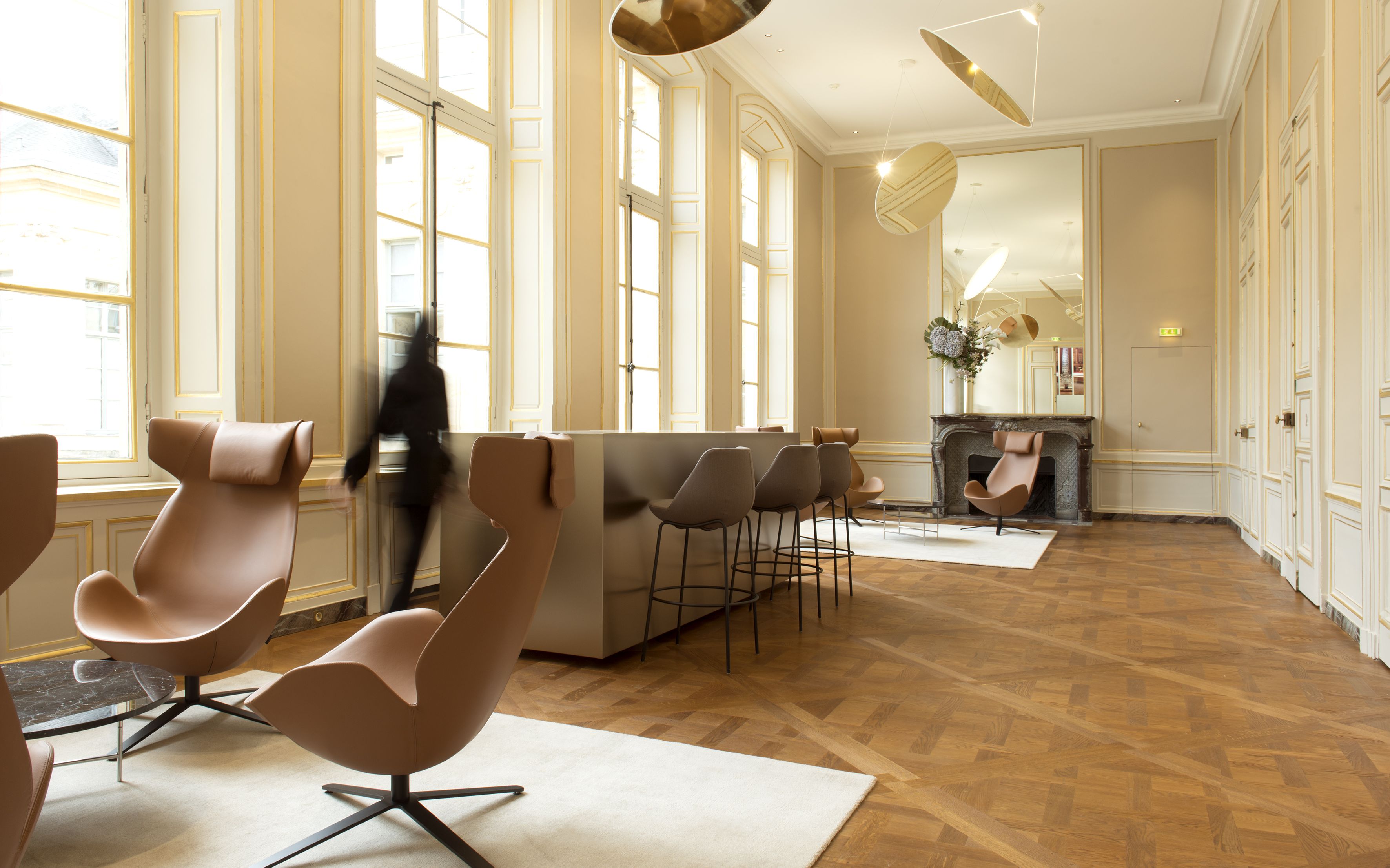 White and Case, cabinet d’avocats international souhaitait revaloriser les espaces clients de son siège historique Parisien Place Vendôme : 1500 m² d’accueil, de salle de réunions, de galeries de réception complétés d’un espace fitness et restauration pour les collaborateurs de la firme.