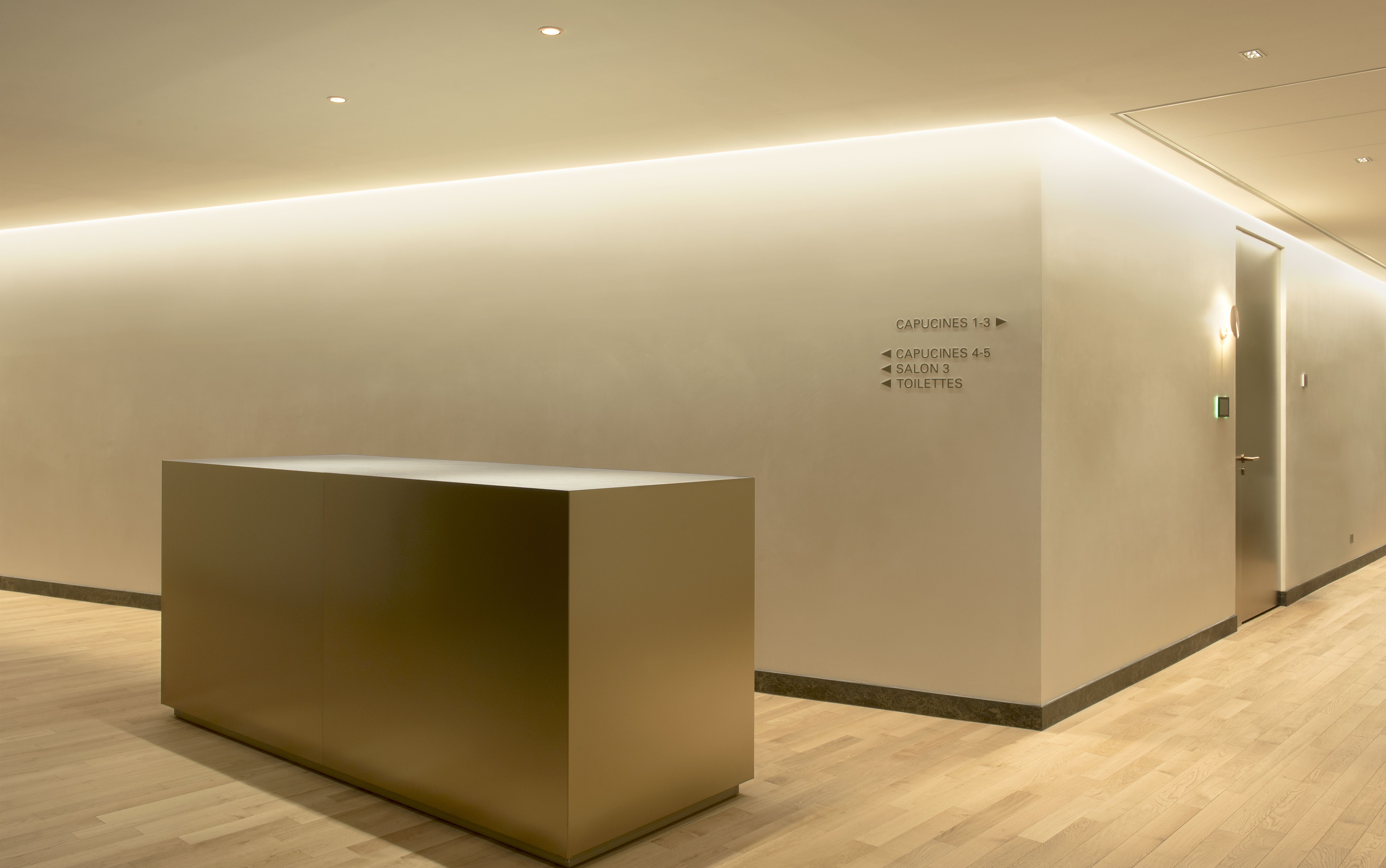 Il importait d’unifier sous une même identité deux zones bien distinctes; l’une occupant l’hôtel d’Evreux, magnifique bâtiment inscrit aux Monuments Historiques, l’autre composée de 2 étages en sous-sol sans réelle qualité architecturale ni lumière du jour.