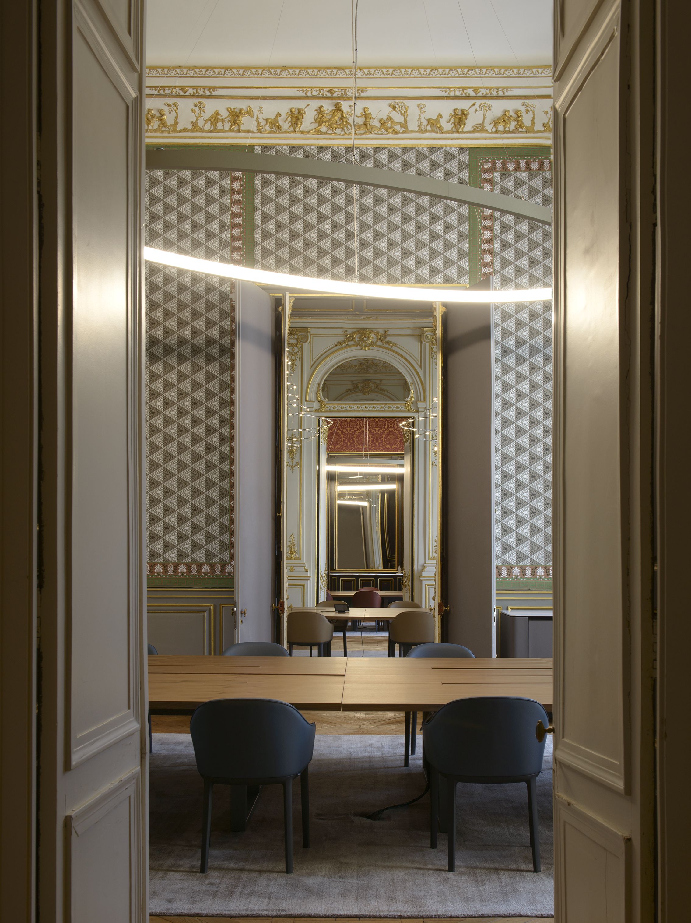 Une composition architecturale audacieuse des espaces, associée au design innovant et gracieux de nombreux éléments de mobilier et luminaire a été développée au travers des différents espaces. En outre, un important travail a été mené sur les détails et matériaux afin de redonner à l’ensemble ses qualités d’excellence, de modernité et d’unicité.
