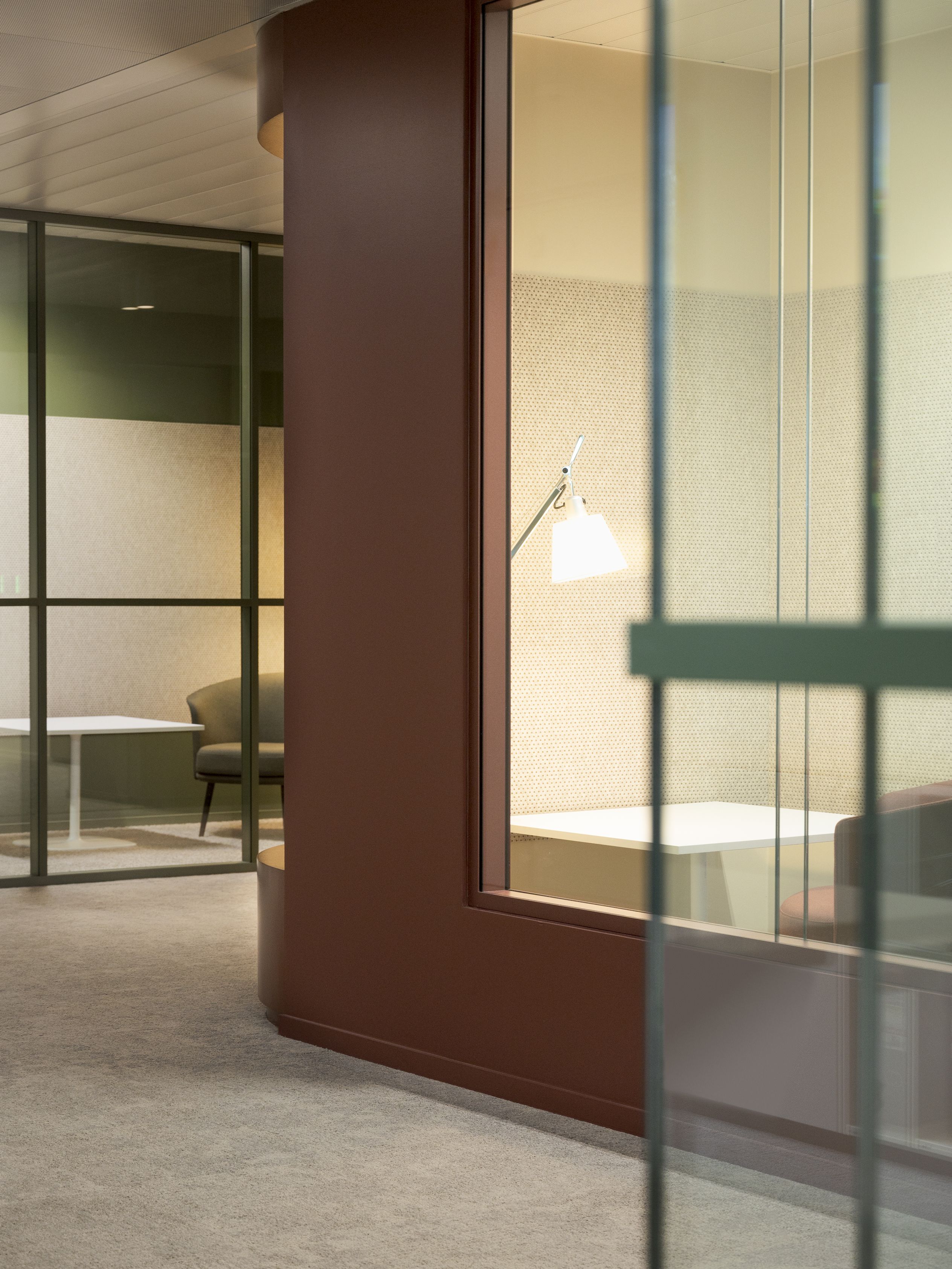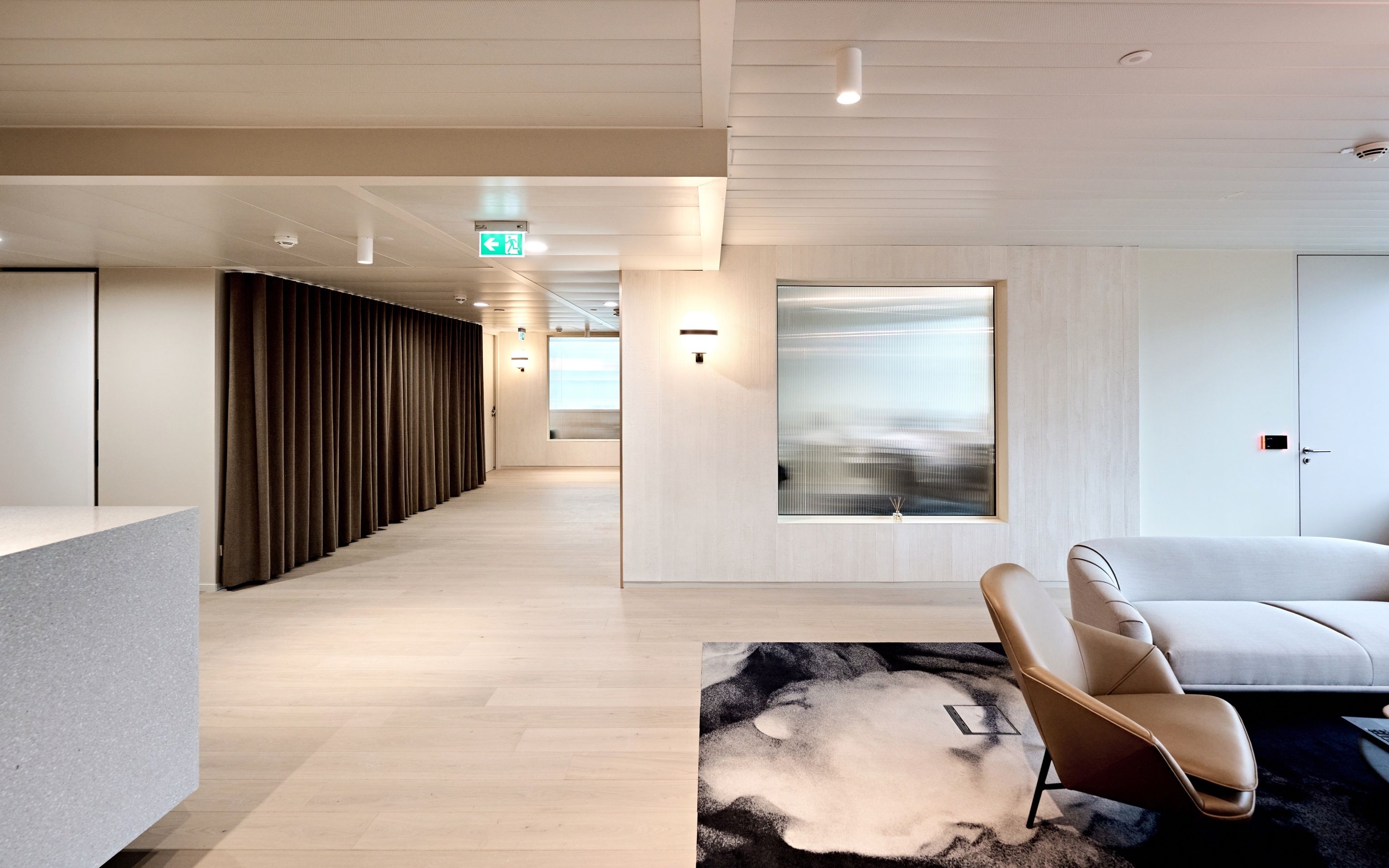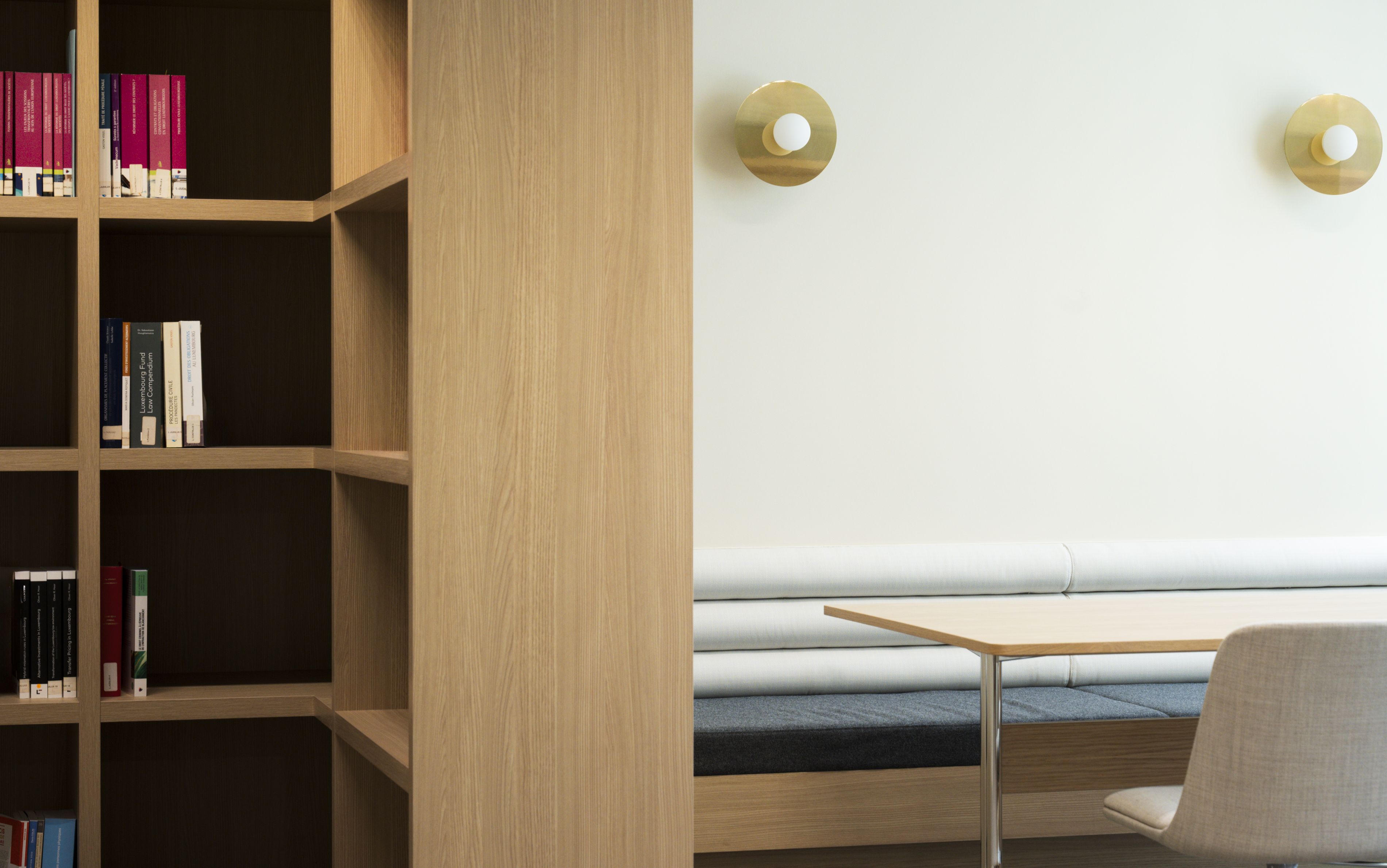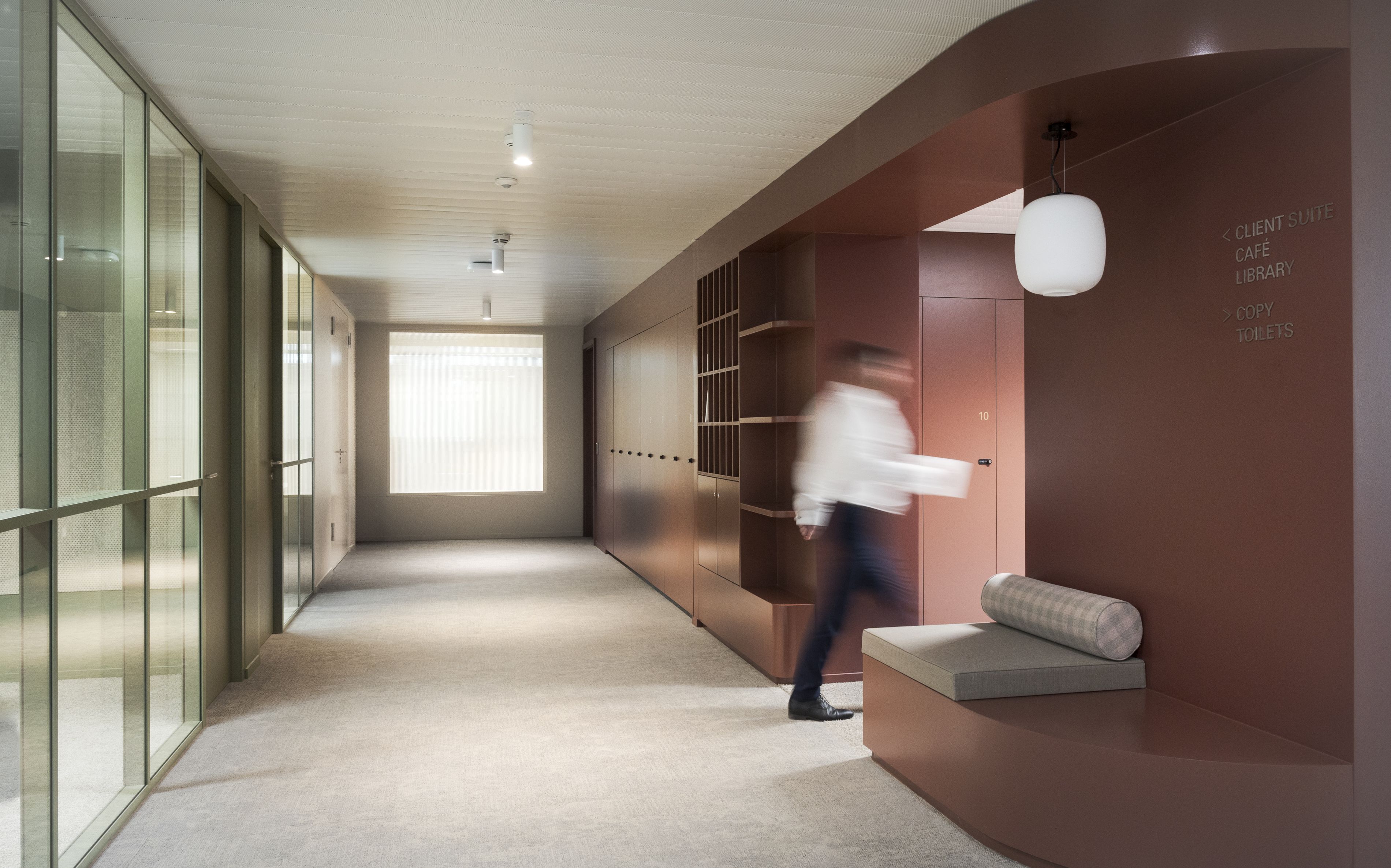 Structuré autour des espaces de services - salons, accueil, business center, café lounge ou bibliothèque - le premier siège luxembourgeois de la firme a été conçu sur mesure pour répondre aux exigences d’excellence et d’innovation de White & Case.
